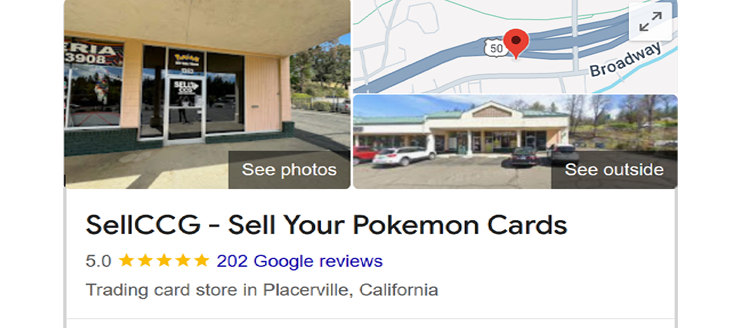 Visit our brick & mortar shop in Placerville to sell your Pokemon cards; we occasionally travel around the Bay Area, Sacramento & Northern California.